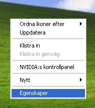 ändra upplösningen på bildskärmen, gör så här: 1. Högerklicka på skrivbordet och välj Egenskaper ![]() 2. Välj Inställningar på Egenskaper för Bildskärm ![]() 3. Ställ om skärmupplösning till minst 1024x768 bildpunkter ![]() 4. Klicka på OK ![]() 5. Svara Ja på ev. ny fråga om den nya inställningen accepteras |