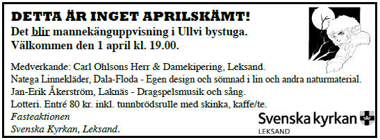 Mannekänguppvisning i bystugan den 1 april 2009 kl 19:00